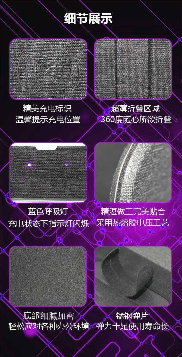 折疊支架款無(wú)線充電鼠標(biāo)墊可定制 布紋超薄無(wú)線充鼠標(biāo)墊可印LOGO