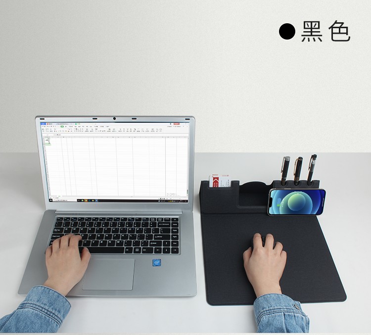 支架款無(wú)線充鼠標(biāo)墊,手機(jī)一放,立即充電,給手機(jī)提供支架,布面,表面細(xì)膩、平整、操作穩(wěn)定,底部淺絨,防滑穩(wěn)固