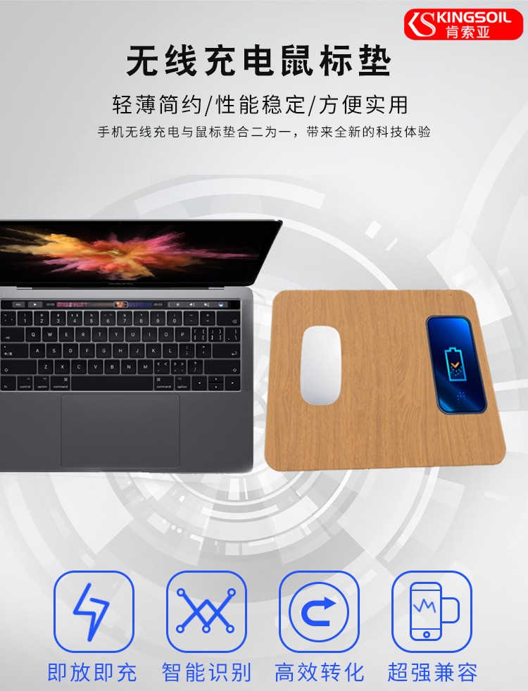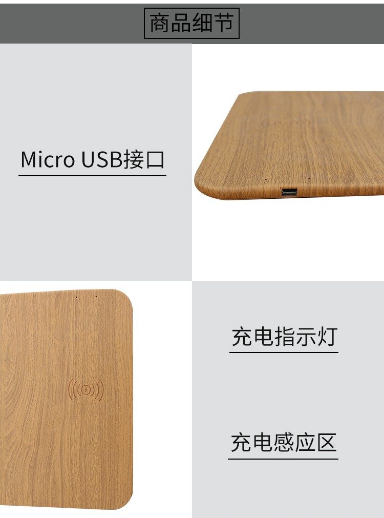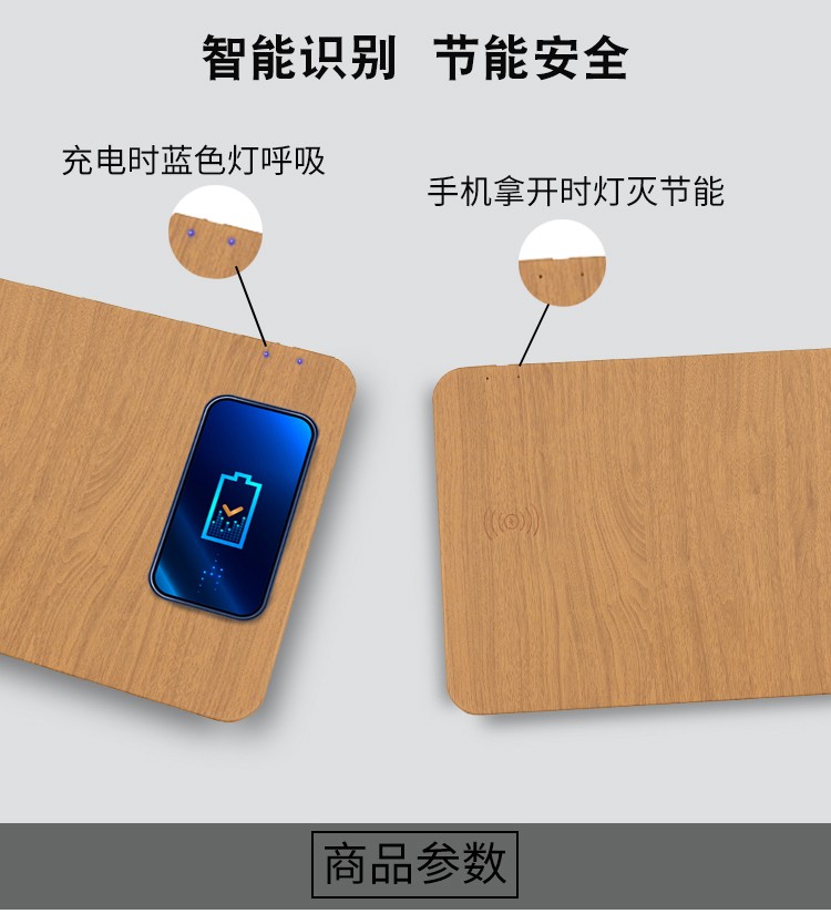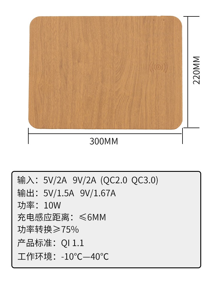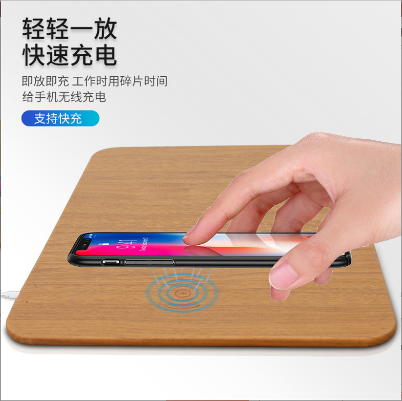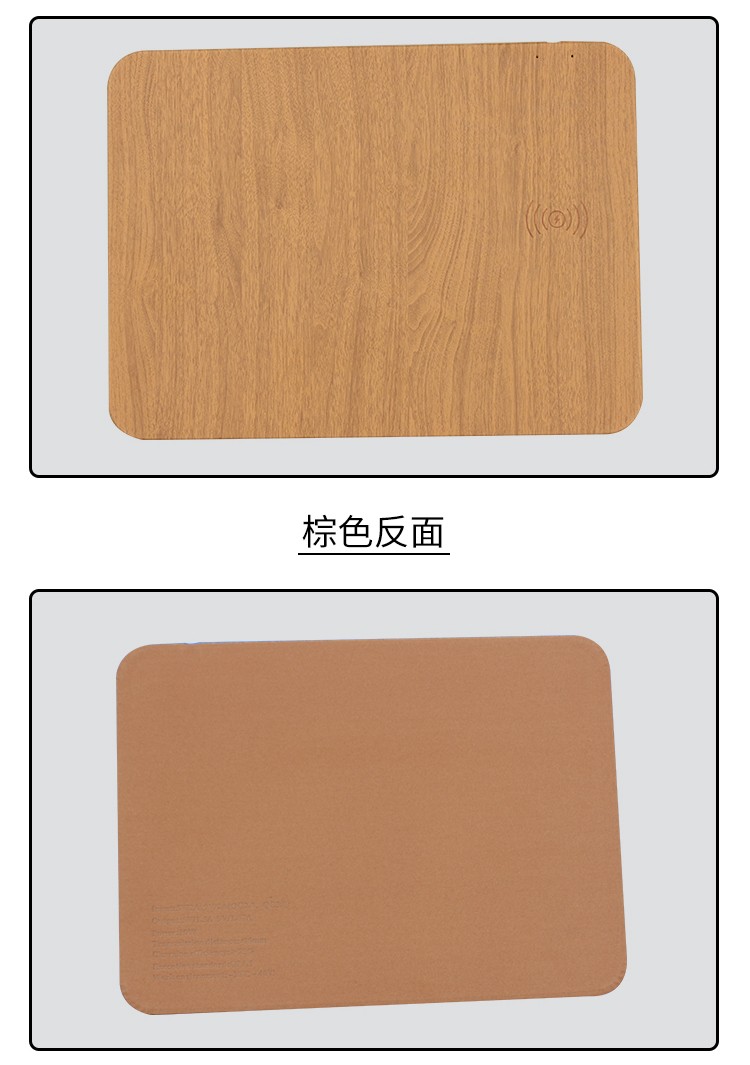 木紋款無線充鼠標墊,手機一放,立即充電,表面PU,表面細膩、平整、操作穩定,底部淺絨,防滑穩固