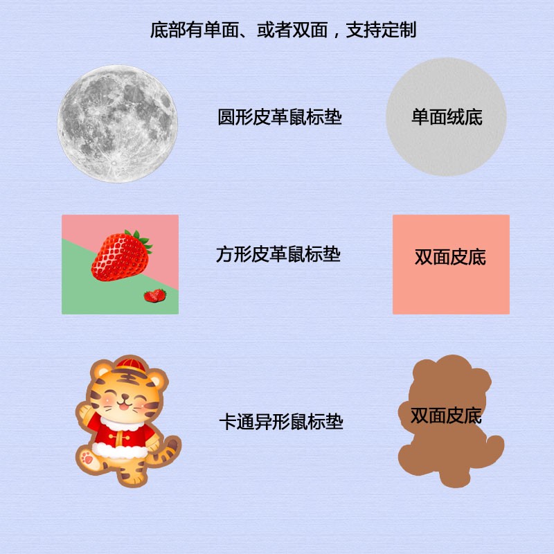 雙面皮革鼠標墊、防水耐臟、防滑穩固、卡通造型,支持尺寸定制,來圖定制