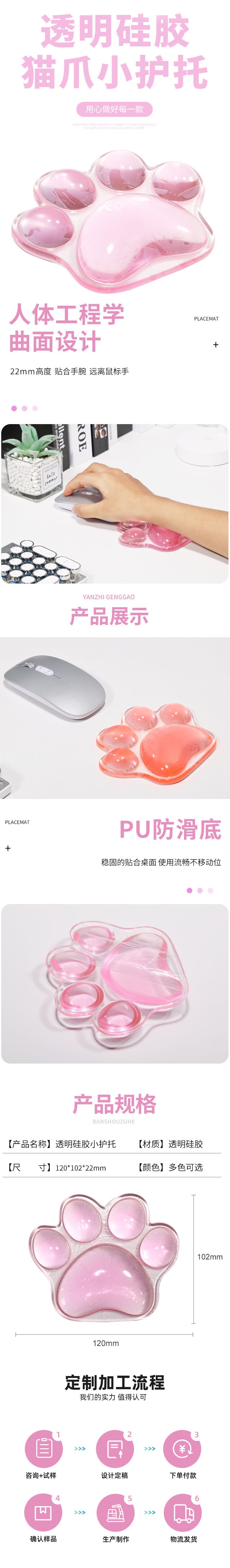 小號貓爪透明硅膠護腕墊